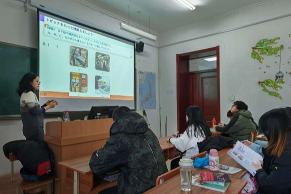 第二场在主楼A301教室,日语专业张波老师主讲的《中级日语视听说I》,课堂氛围活跃、讲解要点清晰、节奏明快,由简听到精听,层层递进,细化确认员工理解程度。课件内容丰富,图片、表格与听力文本相辅相成,关键词与表达以彩色字体凸显,助力员工快速掌握要点。